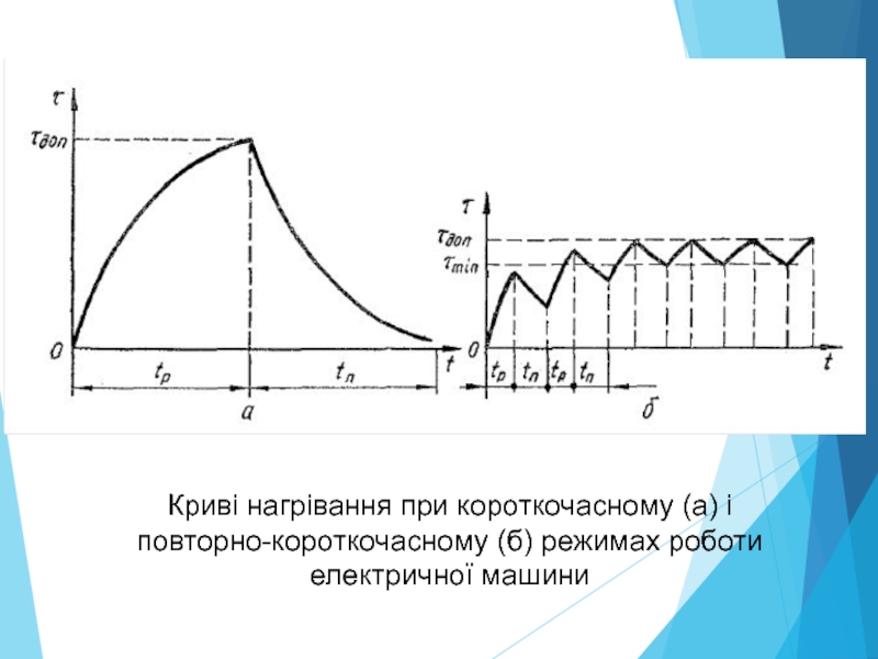 Слайд 57Криві нагрівання при короткочасному (а) і повторно-короткочасному (б) режимах роботи електричної