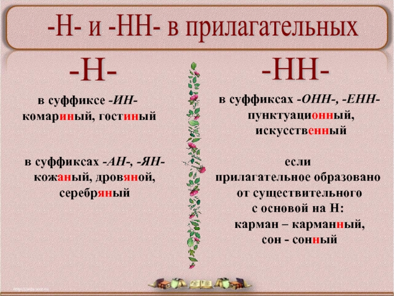 1.В суффиксах АН,ЯН,ИН 1.При наличии приставки (кроме НЕ)