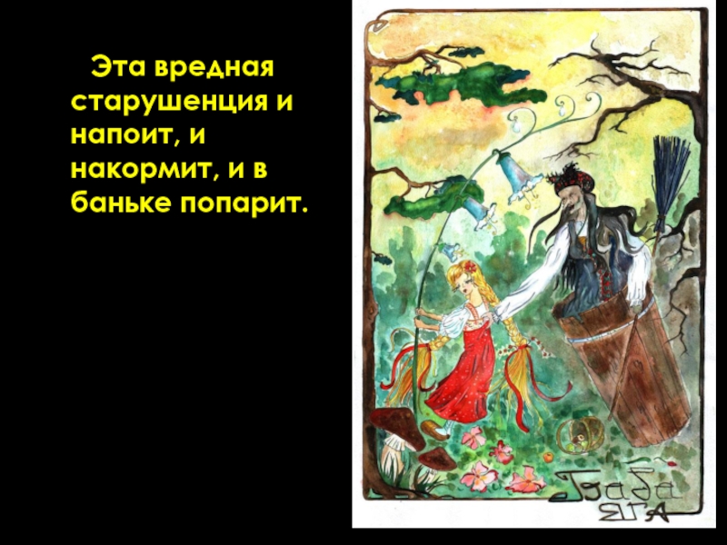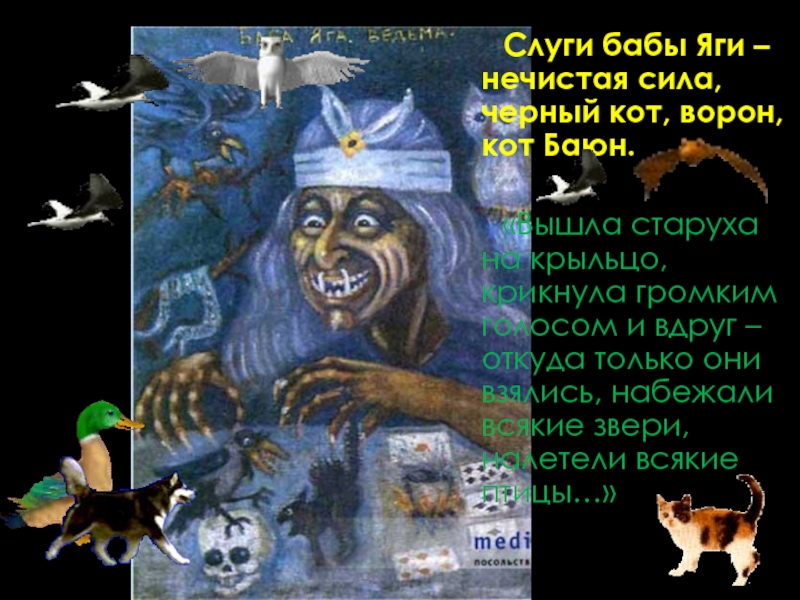 Баба Яга – сказочный персонаж, род ведьмы под личиною безобразной старухи.
