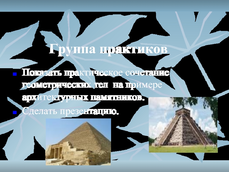 Показать практическое сочетание геометрических тел на примере архитектурных памятников.