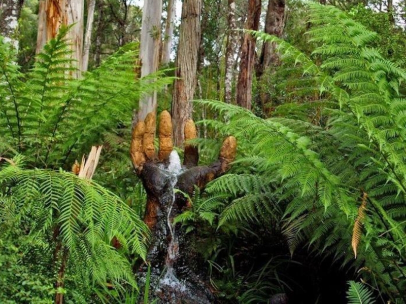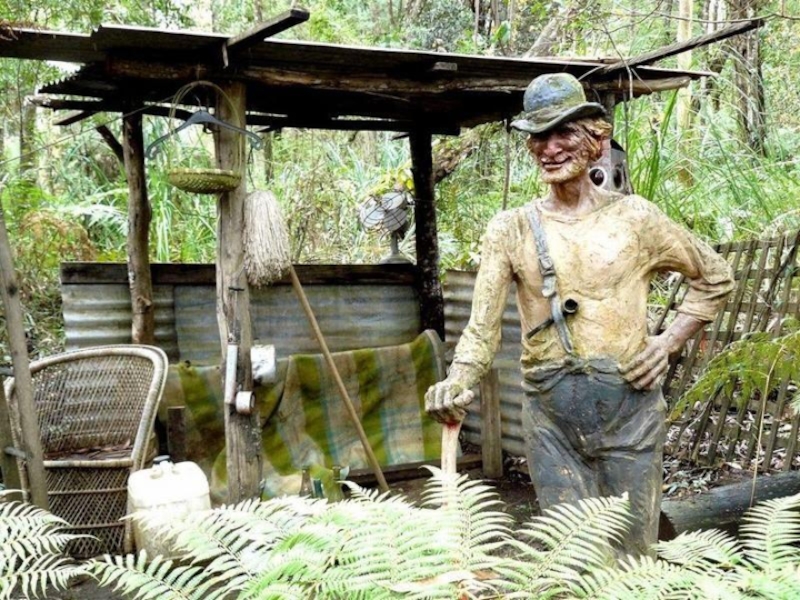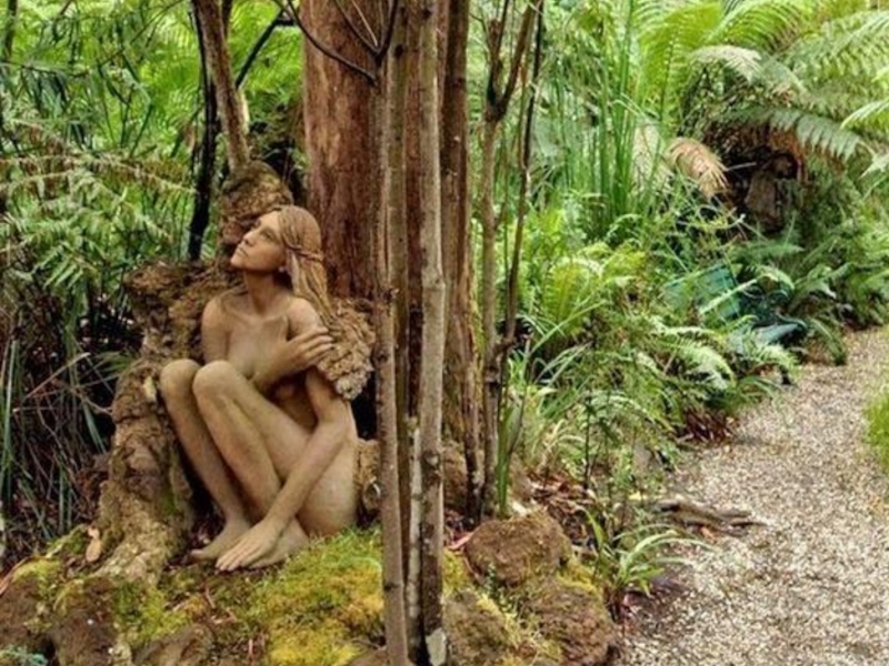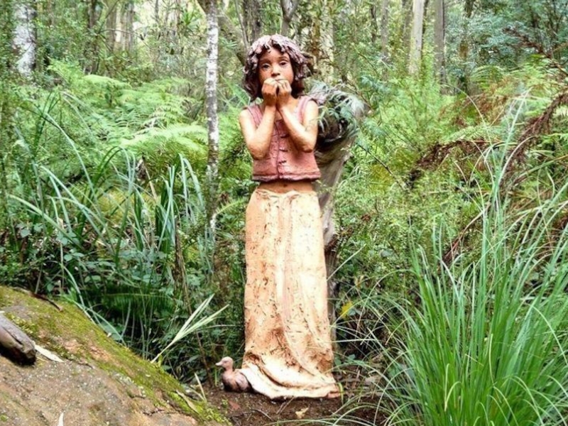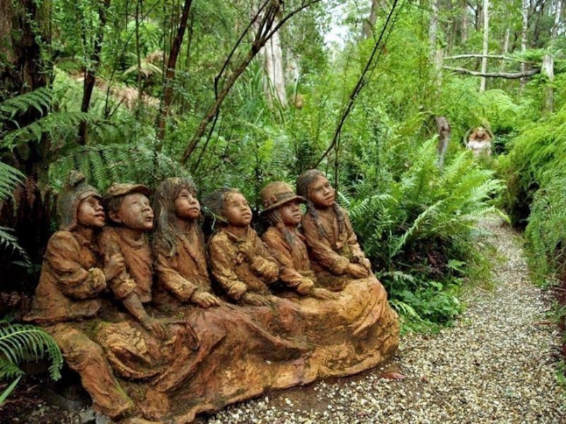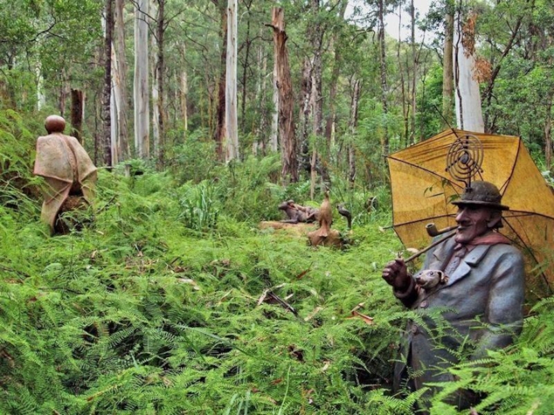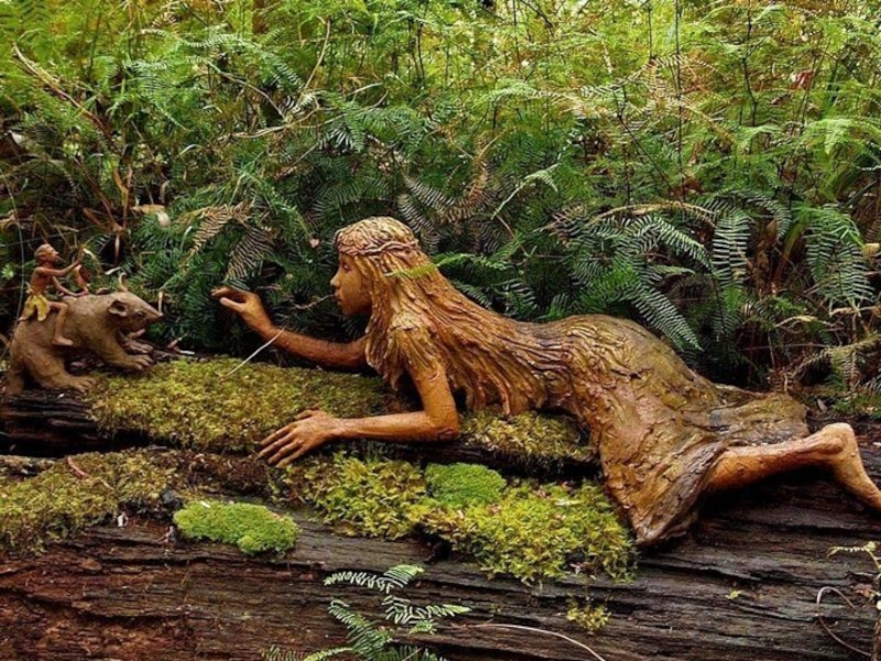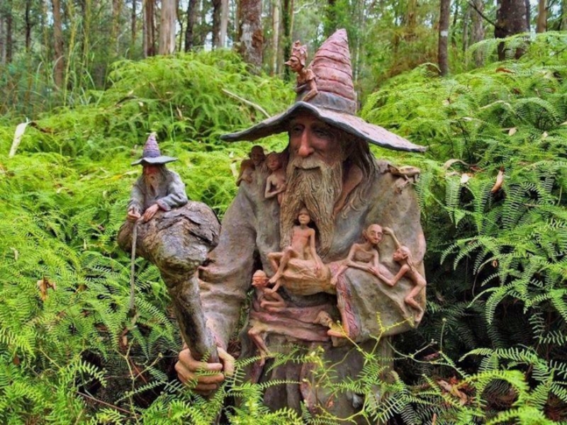 полный фантазии, красоты и юмора.Живёт в Мэрисвилле самобытный художник и скульптор Бруно Торфс (Bruno Torfs). Это он населил близлежащий лес жителями, расставляя свои работы и на виду, и так, что не сразу их заметишь. И лес стал сказочным, волшебным миром.