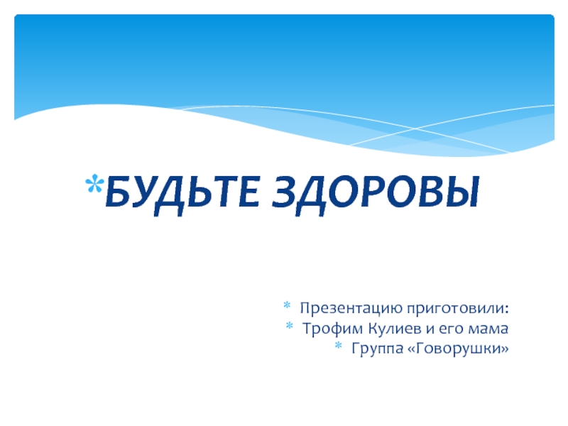 БУДЬТЕ ЗДОРОВЫ