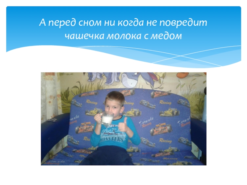 Слайд 11А перед сном ни когда не повредит чашечка молока с медом