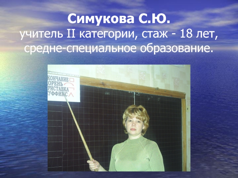 учитель II категории, стаж - 18 лет, средне-специальное образование.