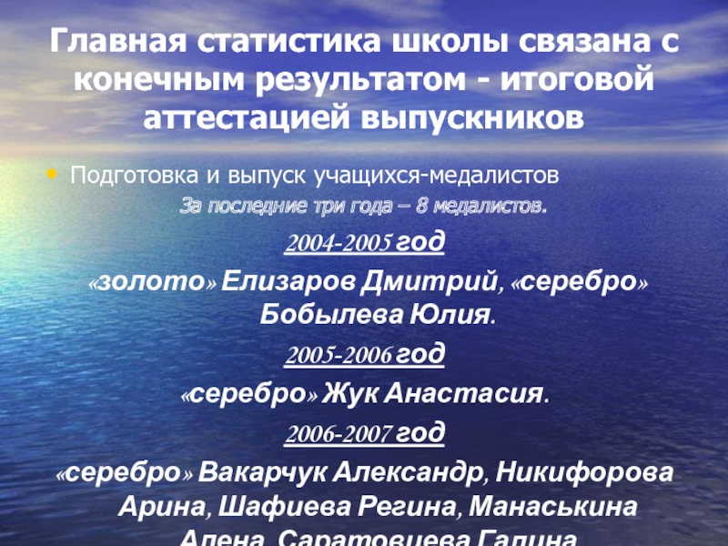 Слайд 5Главная статистика школы связана с конечным результатом - итоговой аттестацией выпускников