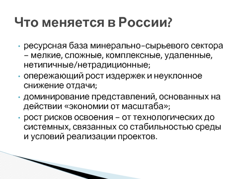 ресурсов недр, но и формировать условия