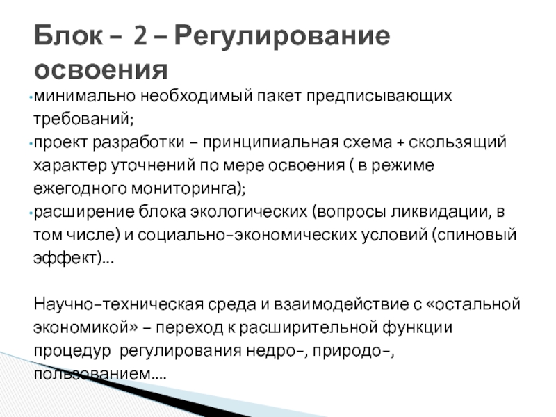 Блок - 2 – Регулирование освоения