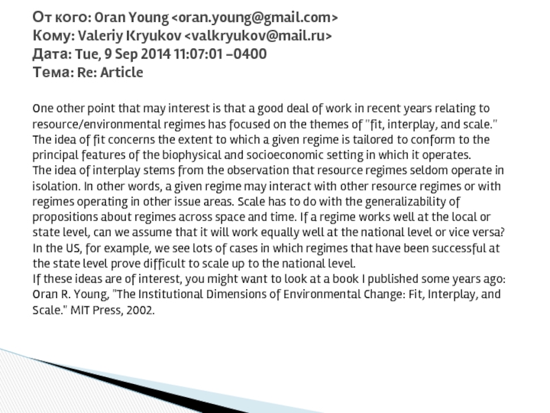 От кого: Oran Young