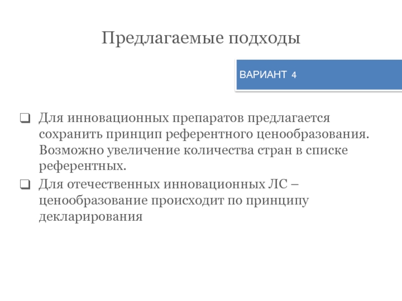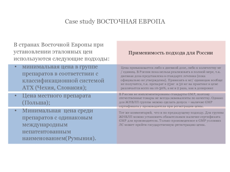 Тот же комментарий, что и по предыдущему подходу. Для группы ЖНВЛП можно установить обязательным наличие сертификата GMP для производителя. Только произведенное в GMP условиях ЛС может пройти государственную регистрацию цены.
