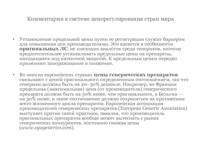 В России не имплементированы стандарты GMP, поэтому отечественные товары не всегда эквиваленты по качеству. Однако для ЖНВЛП группы можно сделать допуск – наличие GMP сертификата у производителя при регистрации цены.