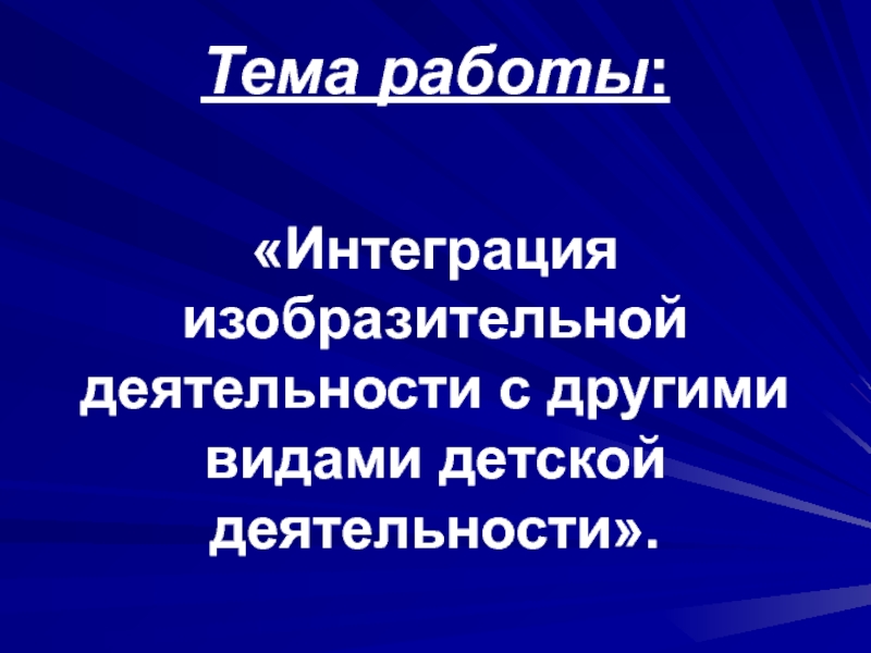 «Интеграция изобразительной деятельности с другими видами детской деятельности».
