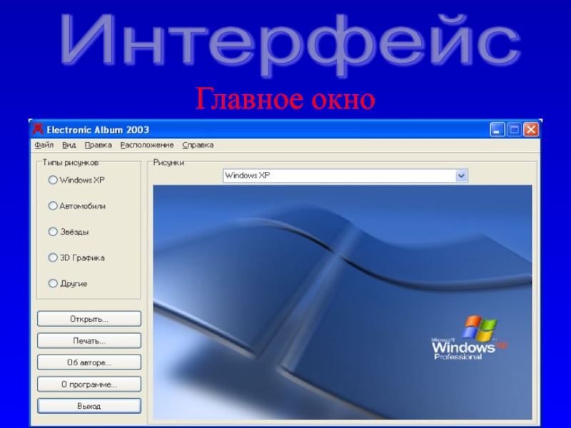 Слайд 5Интерфейс