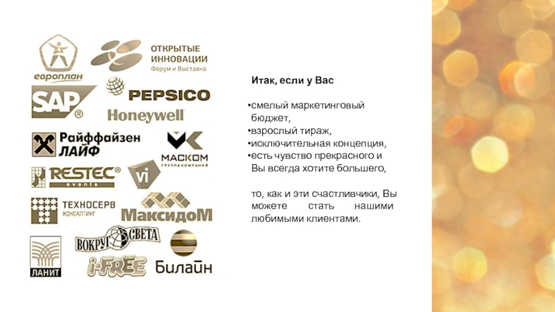 то, как и эти счастливчики, Вы можете стать нашими любимыми клиентами.
