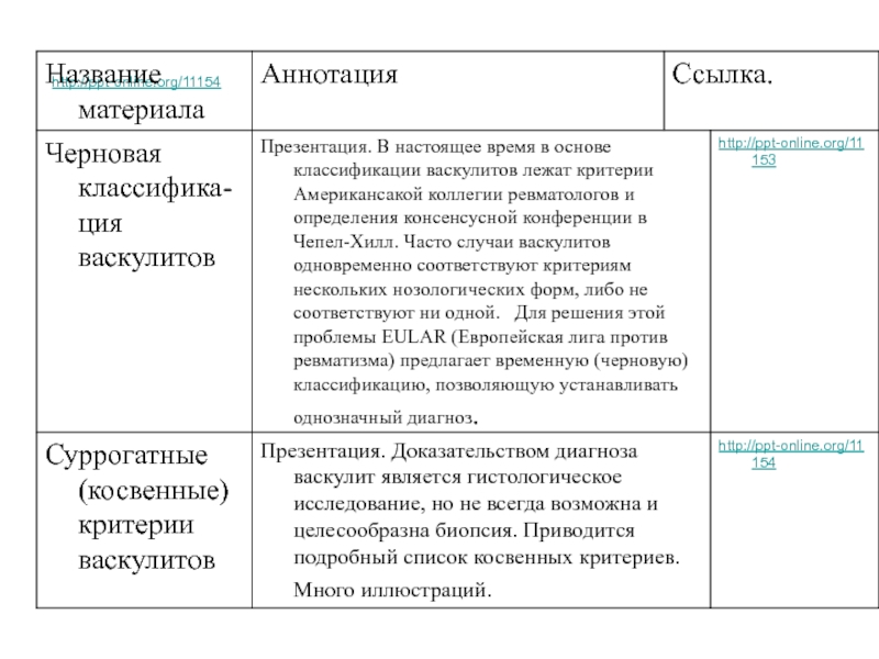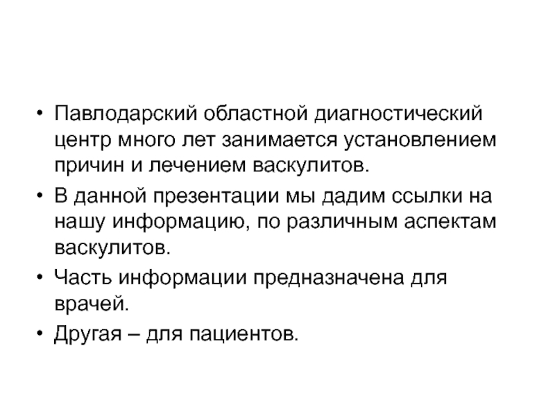 В данной презентации мы дадим ссылки на нашу информацию, по различным аспектам васкулитов.
