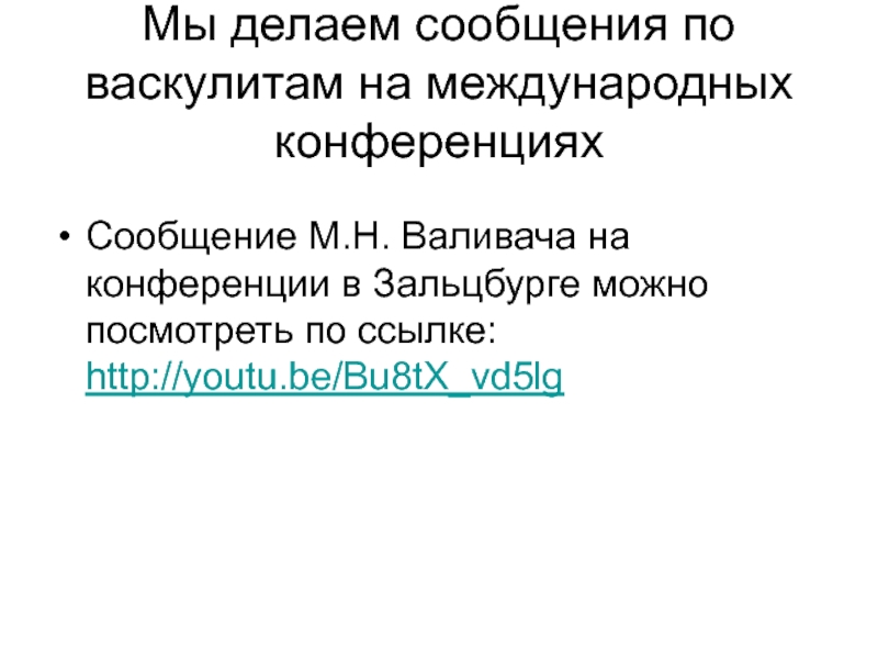 Слайд 6Мы делаем сообщения по васкулитам на международных конференциях