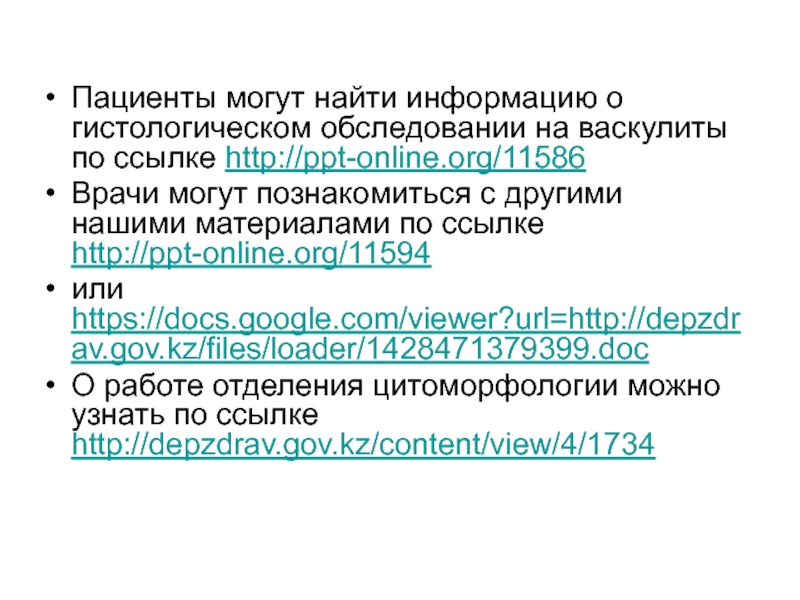 Пациенты могут найти информацию о гистологическом обследовании на васкулиты по ссылке