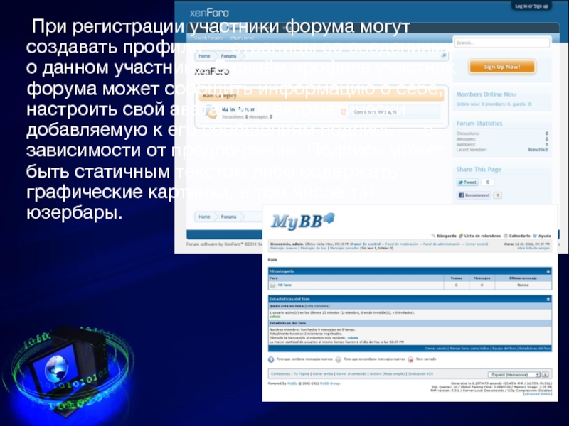 Слайд 3 При регистрации участники форума могут создавать профили —