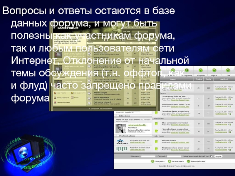 Слайд 5Вопросы и ответы остаются в базе данных форума, и могут быть