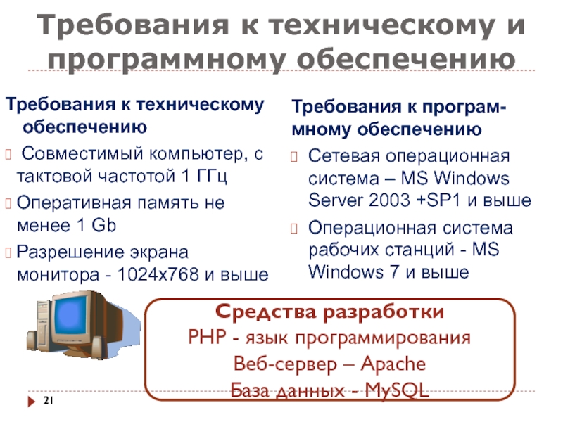 Сетевая операционная система – MS Windows Server 2003 +SP1 и выше