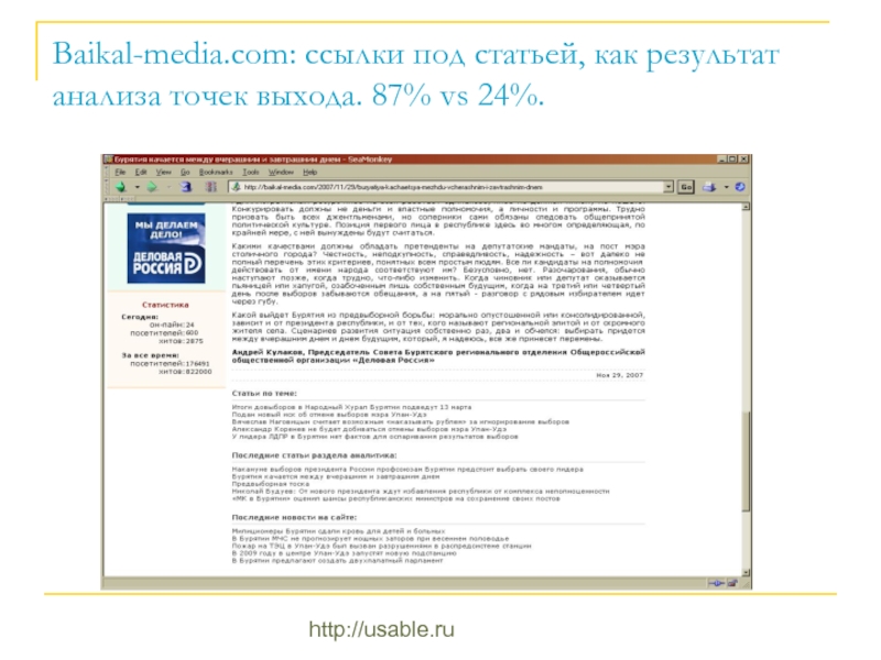 Baikal-media.com: ссылки под статьей, как результат анализа точек выхода. 87% vs