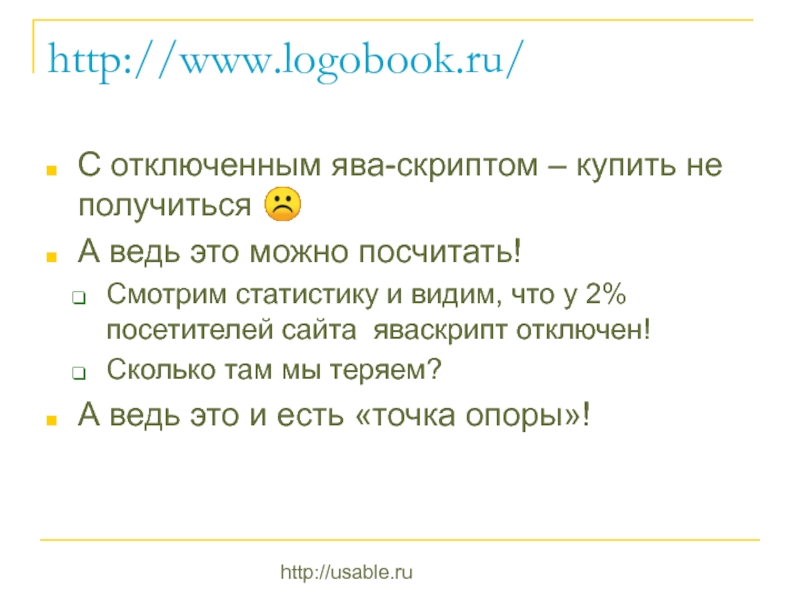 Смотрим статистику и видим, что у 2% посетителей сайта яваскрипт отключен!