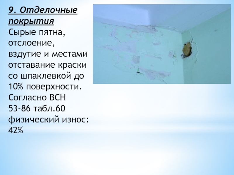 Сырые пятна, отслоение, вздутие и местами отставание краски со