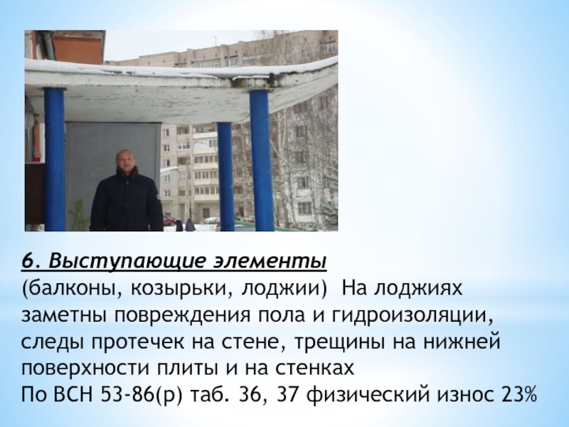 (балконы, козырьки, лоджии) На лоджиях заметны повреждения пола