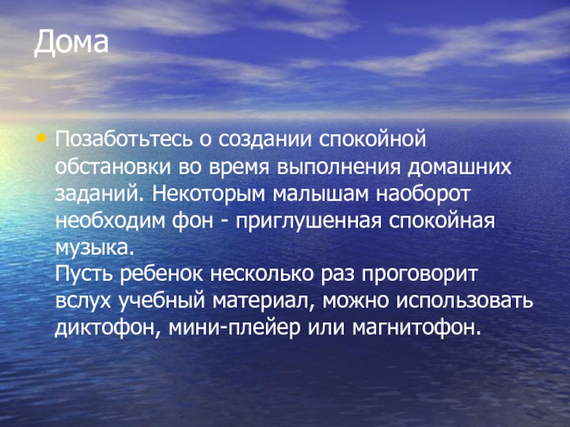 Позаботьтесь о создании спокойной обстановки во время выполнения домашних заданий. Некоторым