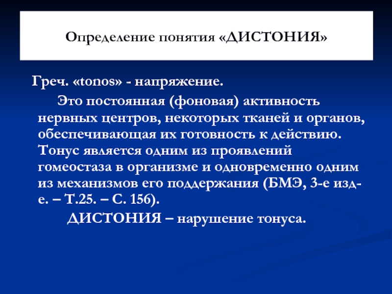 Слайд 4Определение понятия «ДИСТОНИЯ»