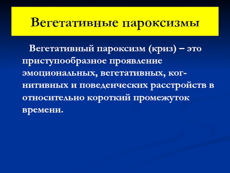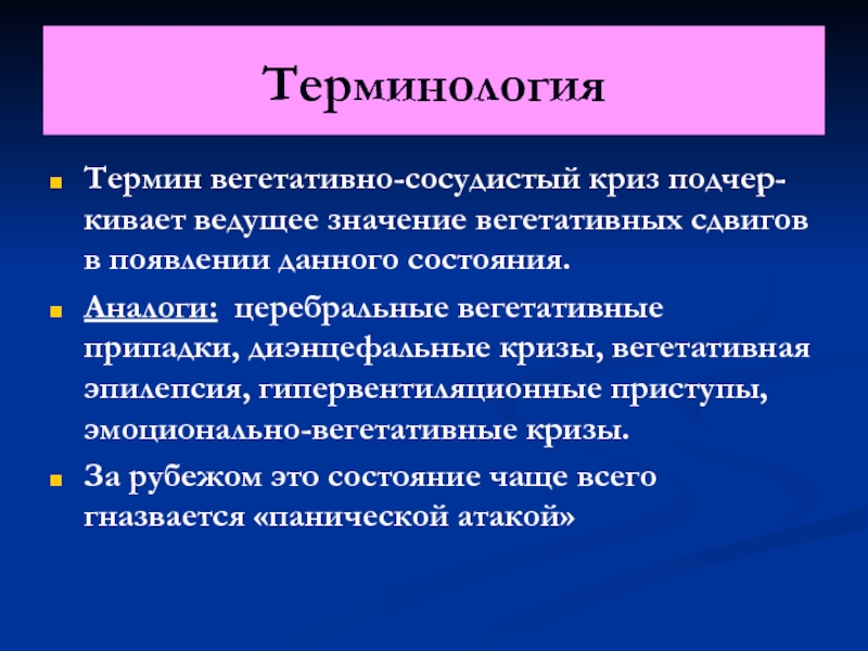 Термин вегетативно-сосудистый криз подчер-кивает ведущее значение вегетативных сдвигов в появлении данного