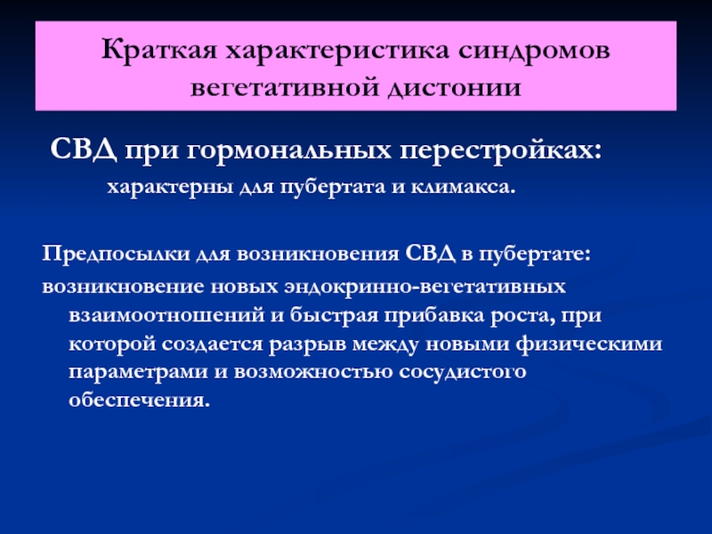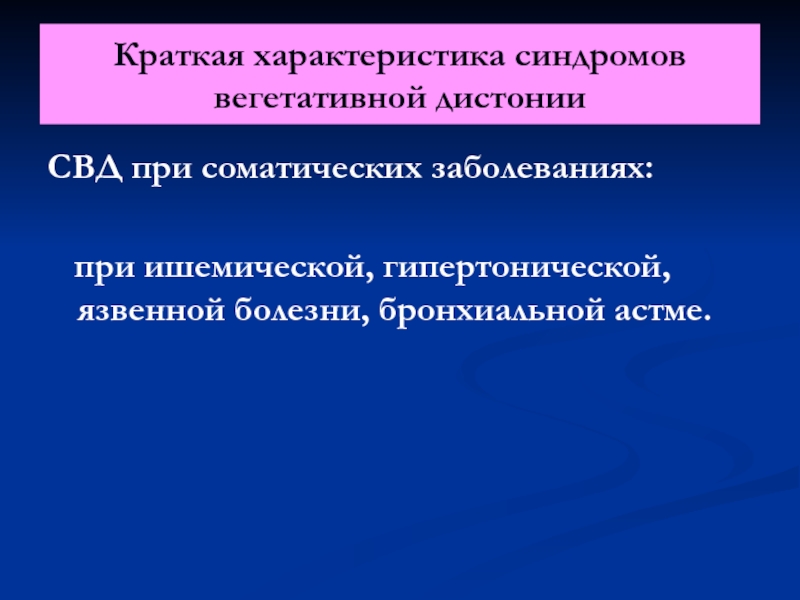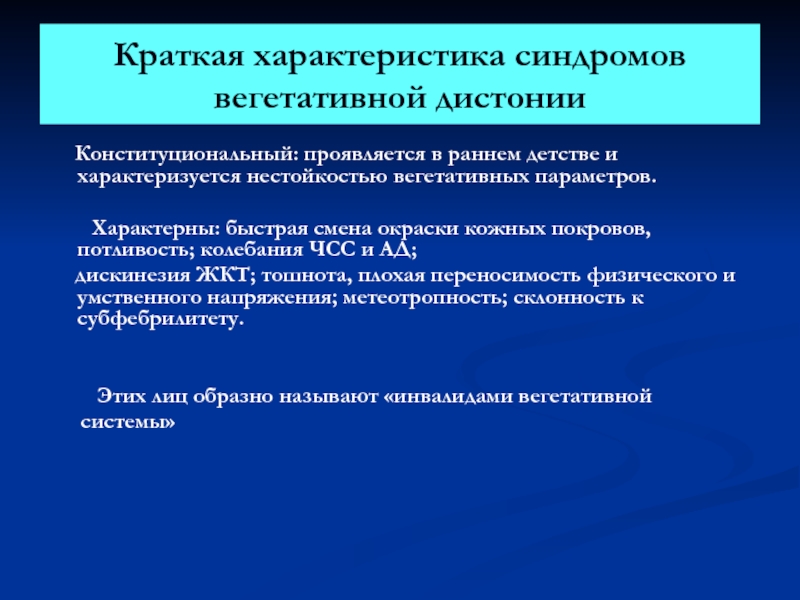 Слайд 18Краткая характеристика синдромов вегетативной дистонии