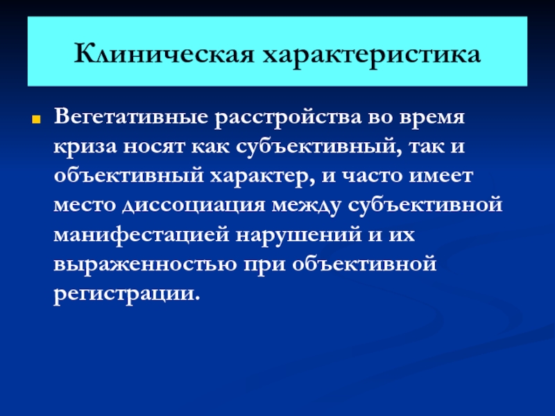 Вегетативные расстройства во время криза носят как субъективный, так и