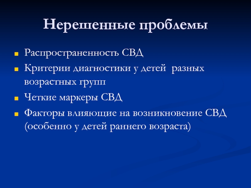 влияющие на возникновение СВД (особенно у детей раннего возраста)