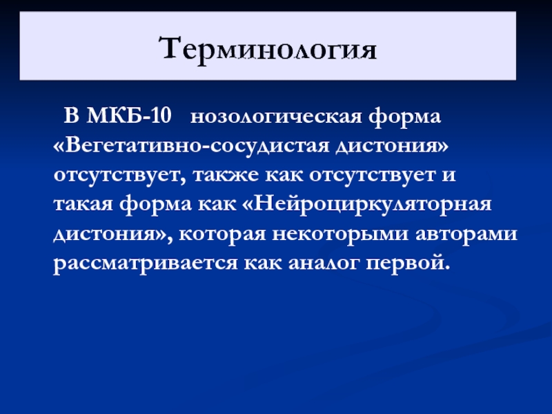 также как отсутствует и такая форма как «Нейроциркуляторная дистония», которая некоторыми авторами рассматривается как аналог первой.