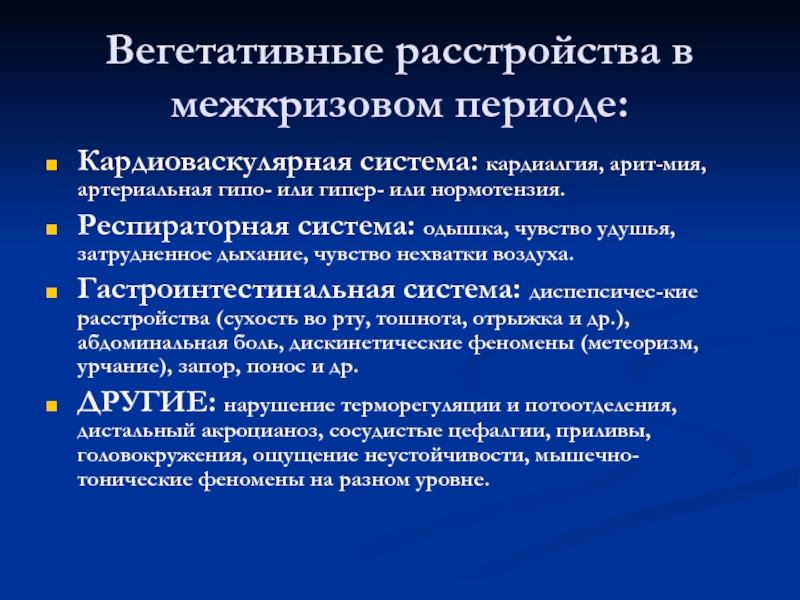 Слайд 38Вегетативные расстройства в межкризовом периоде: