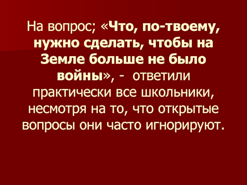 Слайд 16На вопрос; «Что, по-твоему, нужно сделать, чтобы на Земле больше не