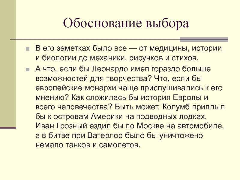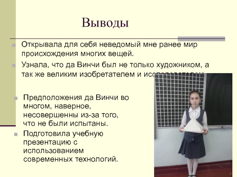 Предположения да Винчи во многом, наверное, несовершенны из-за того, что не были испытаны.