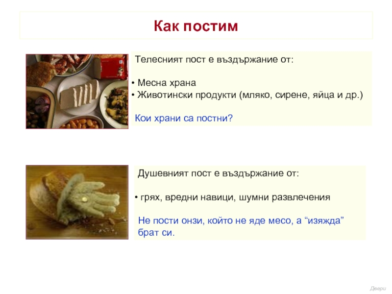 Душевният пост е въздържание от: