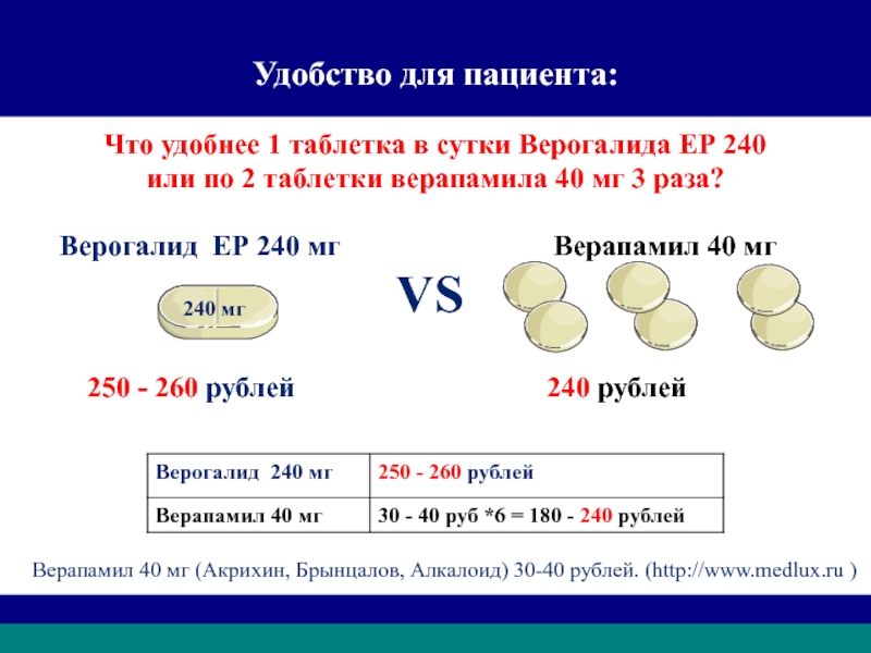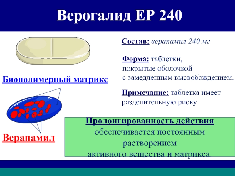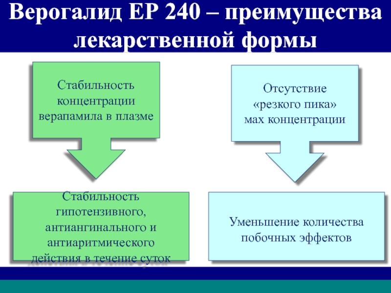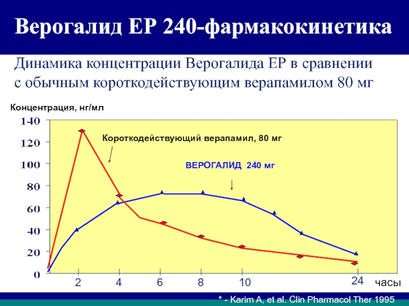 Динамика концентрации Верогалида ЕР в сравнении с обычным короткодействующим верапамилом 80 мг