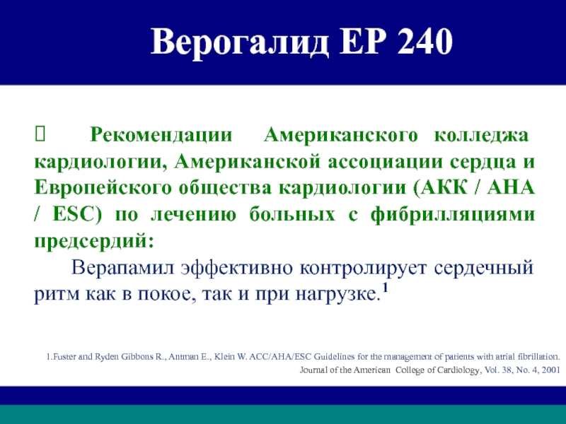 1.Fuster and Ryden Gibbons R., Antman E., Klein W. ACC/AHA/ESC Guidelines for the management of patients with atrial fibrillation. Journal of the American College of Cardiology, Vol. 38, No. 4, 2001