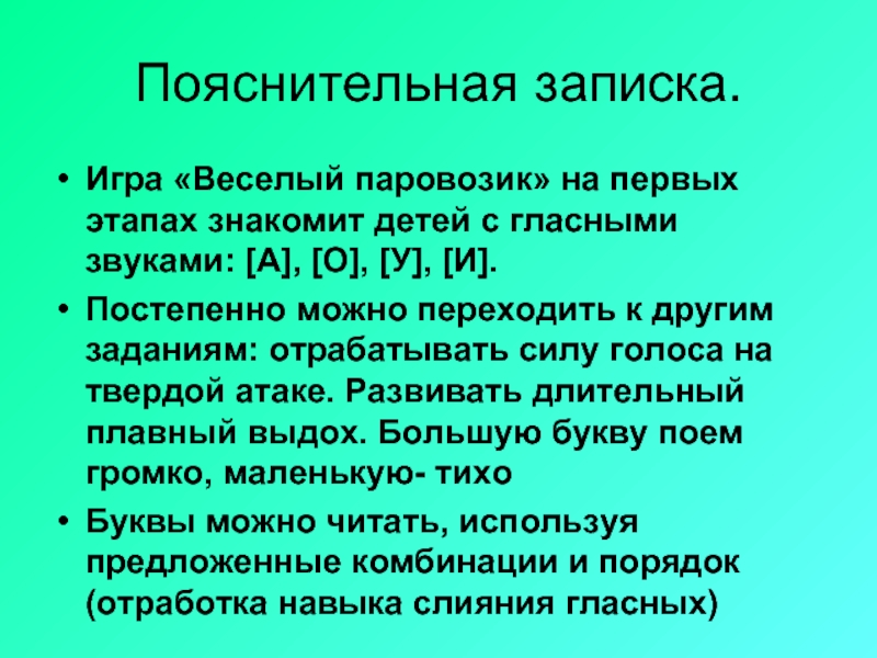 Игра «Веселый паровозик» на первых этапах знакомит детей с гласными