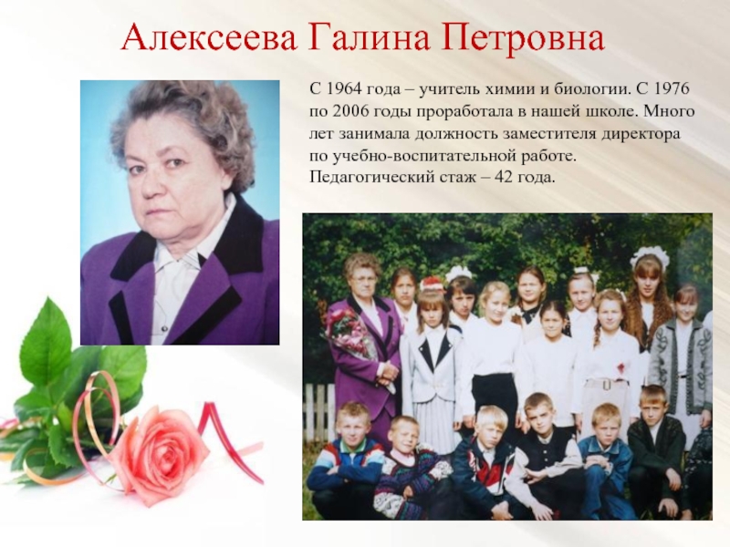 учитель русского языка и литературы первой категории Педагогический стаж – 32 года