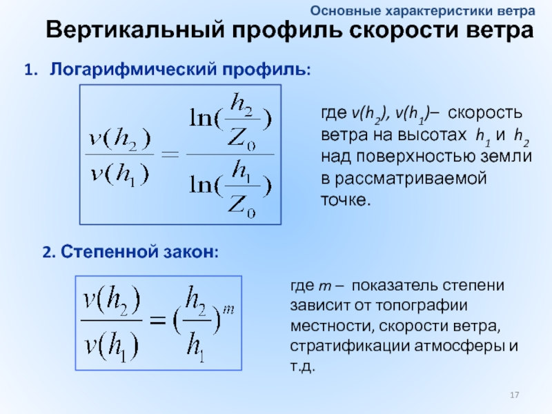 где m – показатель степени зависит от топографии местности, скорости ветра, стратификации атмосферы и т.д.