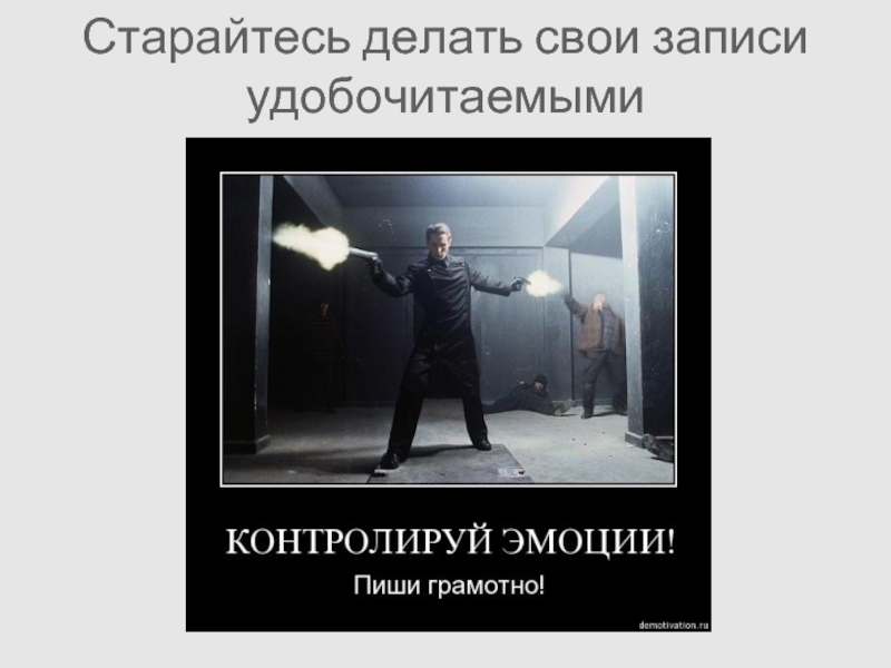 Слайд 8Старайтесь делать свои записи удобочитаемыми