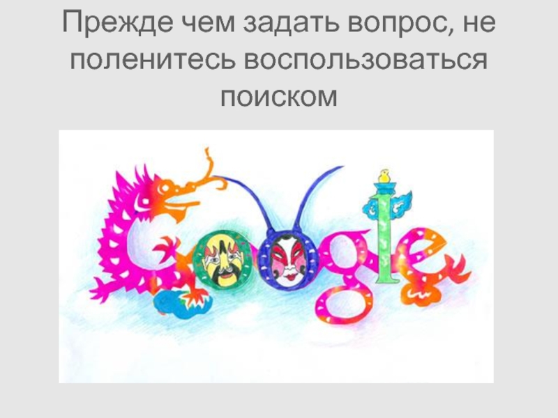 Слайд 7Прежде чем задать вопрос, не поленитесь воспользоваться поиском