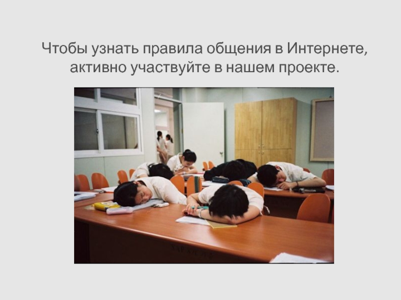 Слайд 10Чтобы узнать правила общения в Интернете, активно участвуйте в нашем проекте.