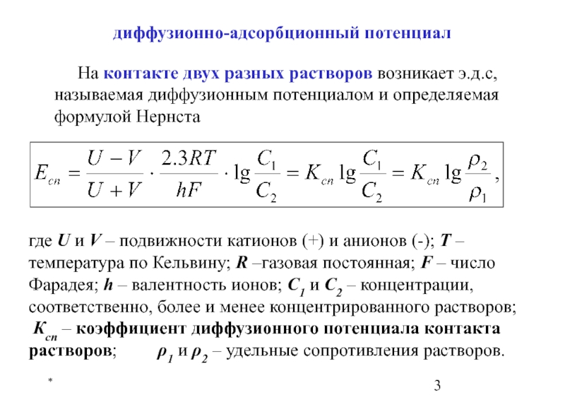 диффузионно-адсорбционный потенциал 1 мкм = 10 -6 м
