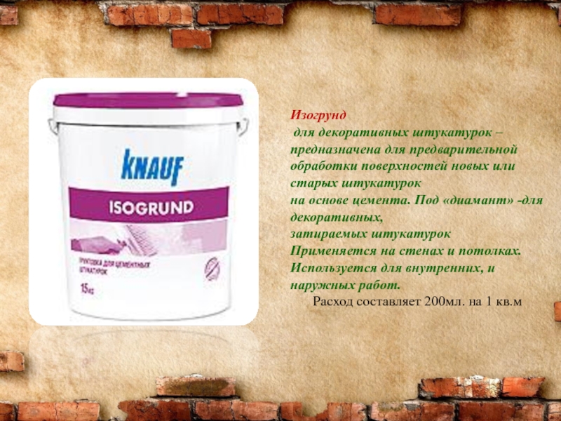 Слайд 8Ротбанд-Грунд препятствует проникновению воды в основание из штукатурного раствора, что позволяет