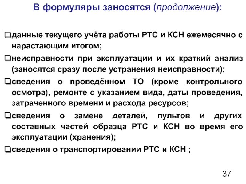 сведения, характеризующие техническое состояние РТС и КСН.