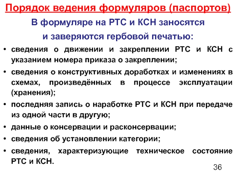 Порядок ведения формуляров (паспортов)